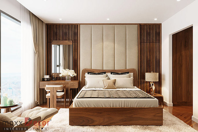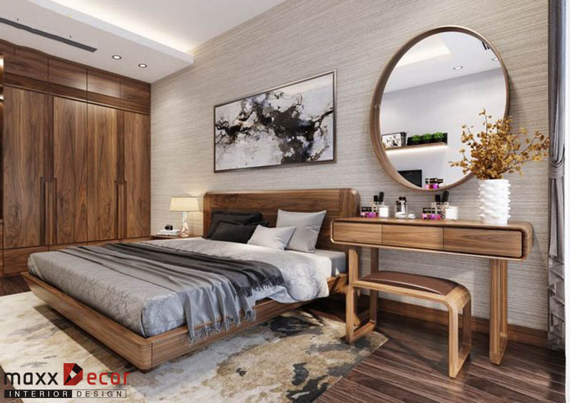 Bàn trang điểm gỗ óc chó trong phòng ngủ diện tích rộng
