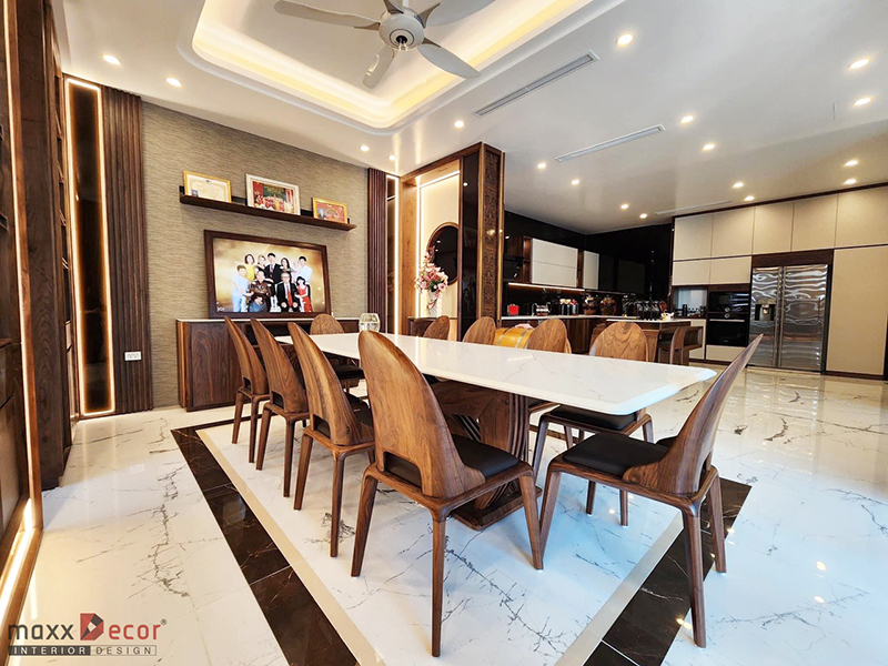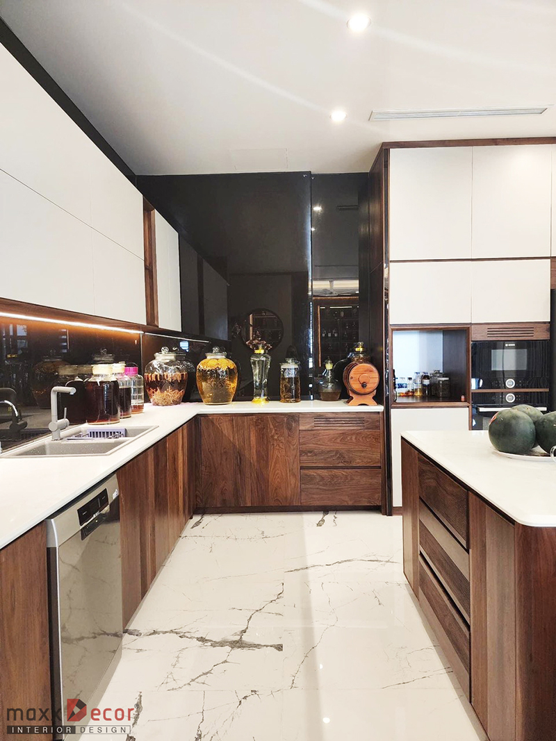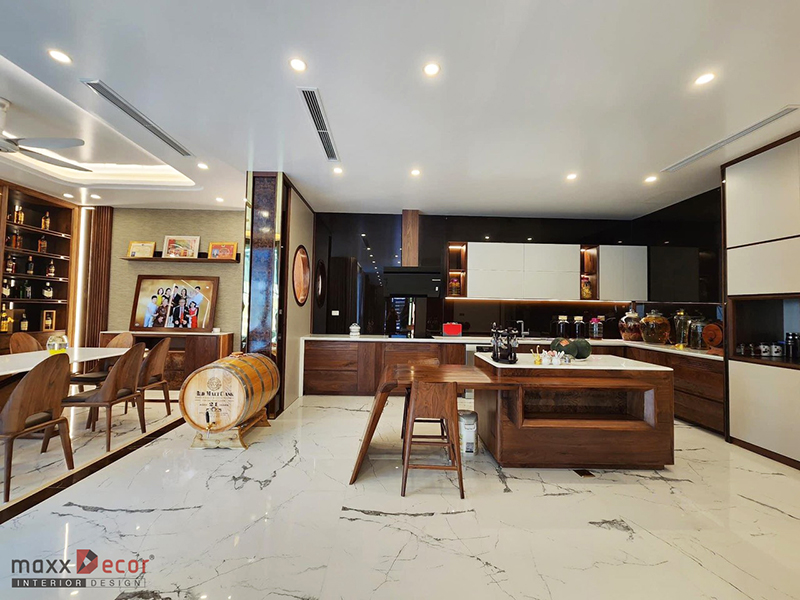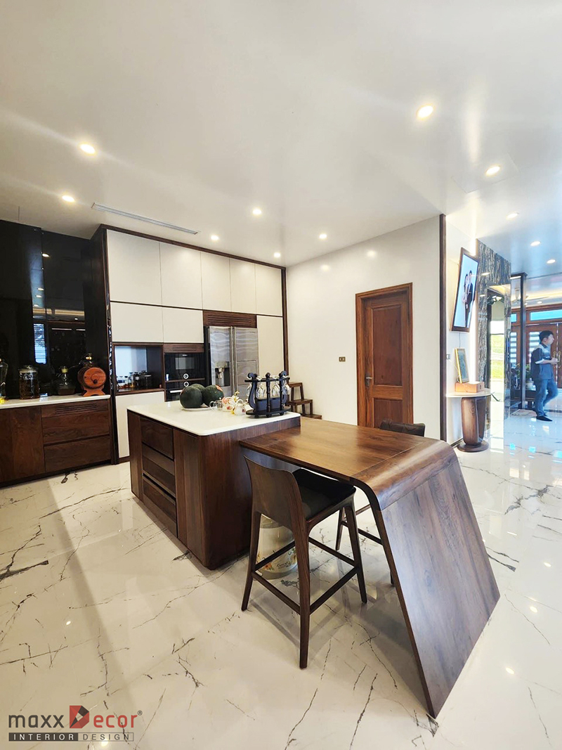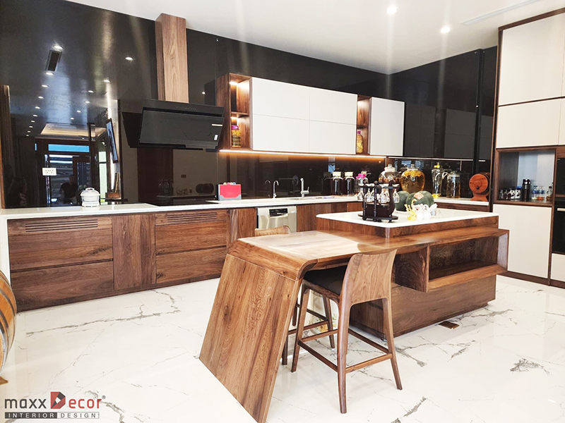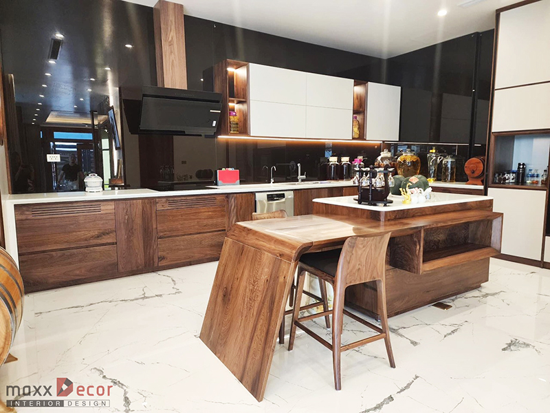 Chủ nhà rất thích gỗ, đặc biệt là gỗ tự nhiên, căn nhà trước đó chủ nhà cũng có làm nội thất gỗ tự nhiên rồi, một vài dòng gỗ của Việt Nam, dùng một thời gian độ ổn định không cao, xuống màu… nên lần này chủ nhà quyết định tham khảo dòng gỗ óc chó này, đến nay dùng được gần 1 năm mà gỗ vẫn đảm bảo màu sắc cũng như độ bền đẹp sang trọng khiến chủ đầu tư khá hài lòng, không biết mọi người có biết nhiều về dòng gỗ này không, nhưng đến với nội thất maxxDecor thì dòng gỗ này quá quen thuộc bởi chúng tôi đã thi công hàng trăm công trình lớn nhỏ.