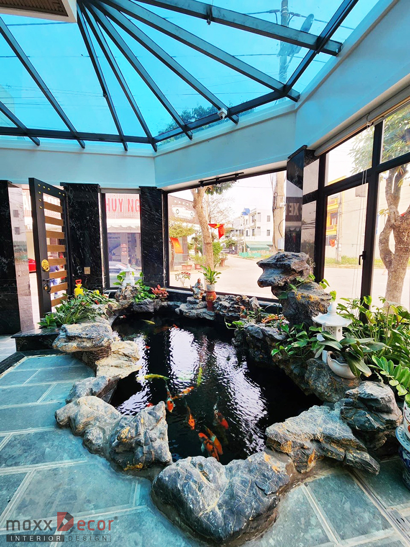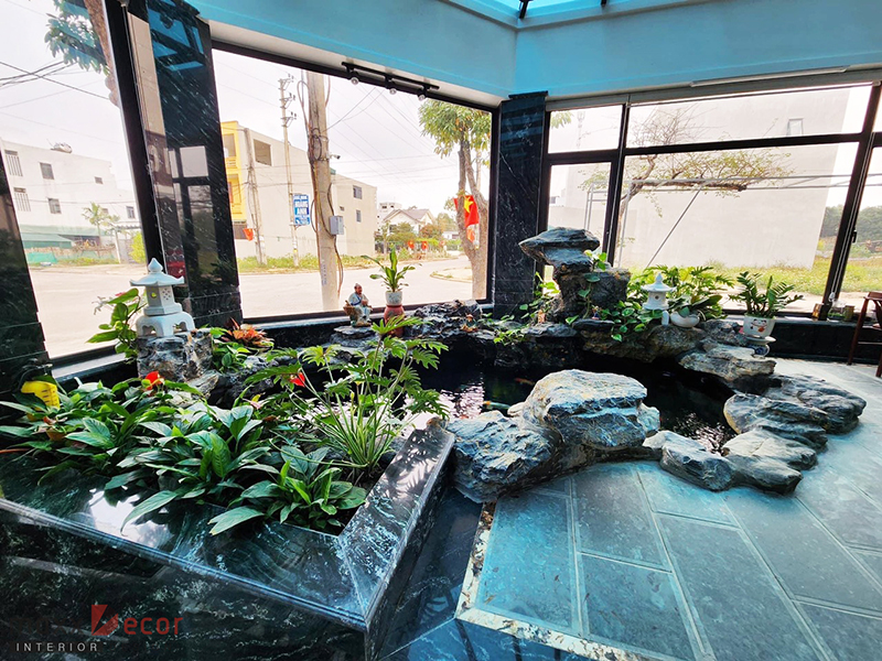 Tiểu cảnh với hồ các coi nhỏ xinh trong khuôn viên sân