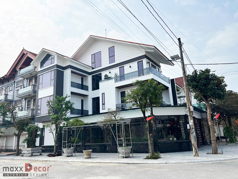 Căn biệt thự nội thất gỗ óc chó với diện tích 210m2 cả sân vườn, diện tích xây dựng là 130m2/1 sàn, xây 3 tầng và 1 tum