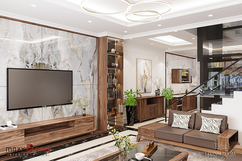 Mẫu thiết kế full nội thất gỗ tự nhiên nhà lô phố tại Nình Bình thiết kế hiện đại, không gian phòng khách kết hợp gỗ và đá ấn tượng. Sức sống lâu bền của nội thất gỗ do vẻ đẹp tự nhiên của chúng, sự sang trọng và đẳng cấp, sự tinh tế mà chúng đem lại cho không gian sống của gia đình. Ngày nay, tuy có rất nhiều vật liệu mới ra được và được sử dụng trong thiết kế nội thất, nhưng nội thất gỗ tự nhiên vẫn có một vị trí riêng không thể phủ nhận.