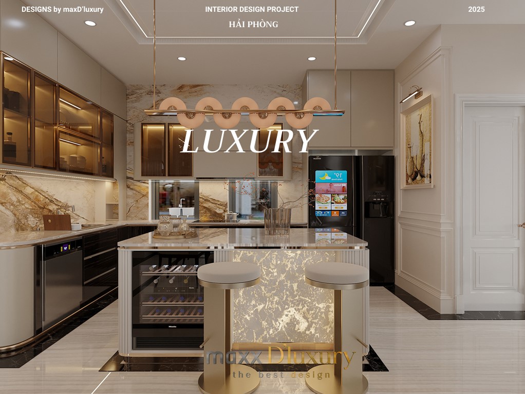 Không gian luxury tinh tế, nhấn nhá kim loại & đá tự nhiên, tối ưu công năng theo thói quen gia chủ.