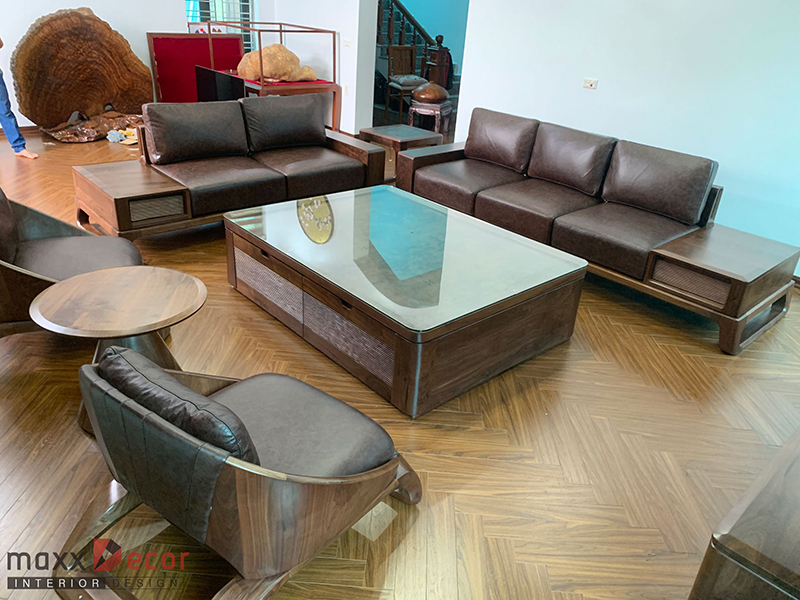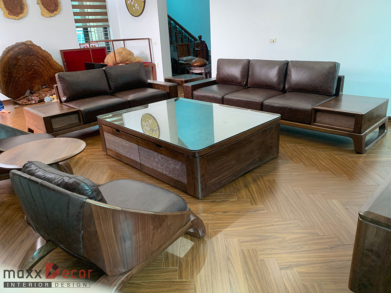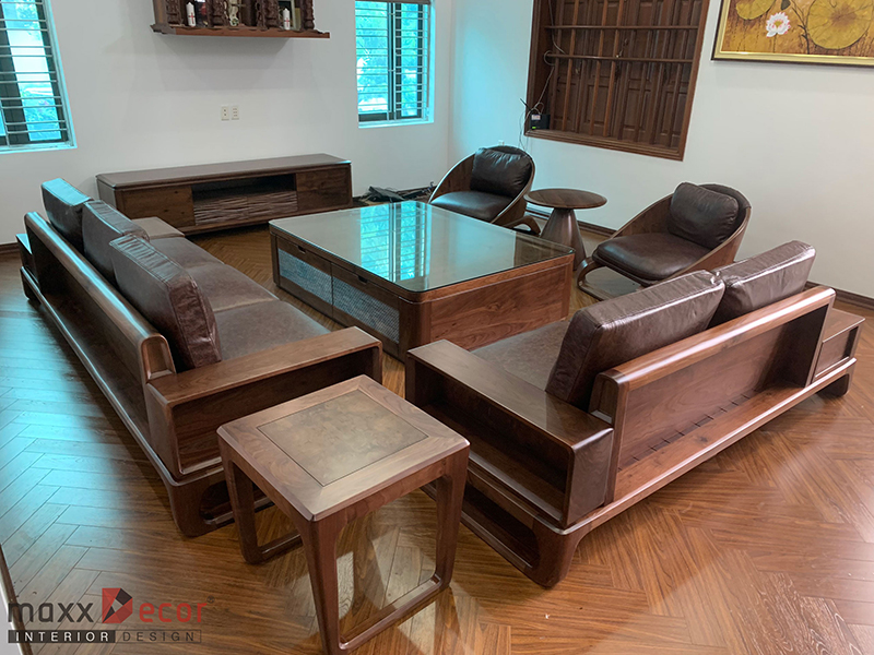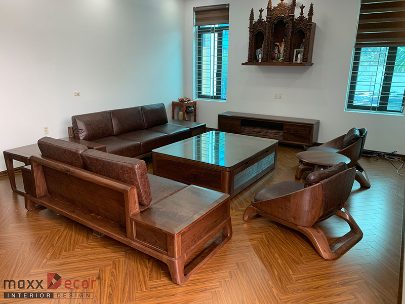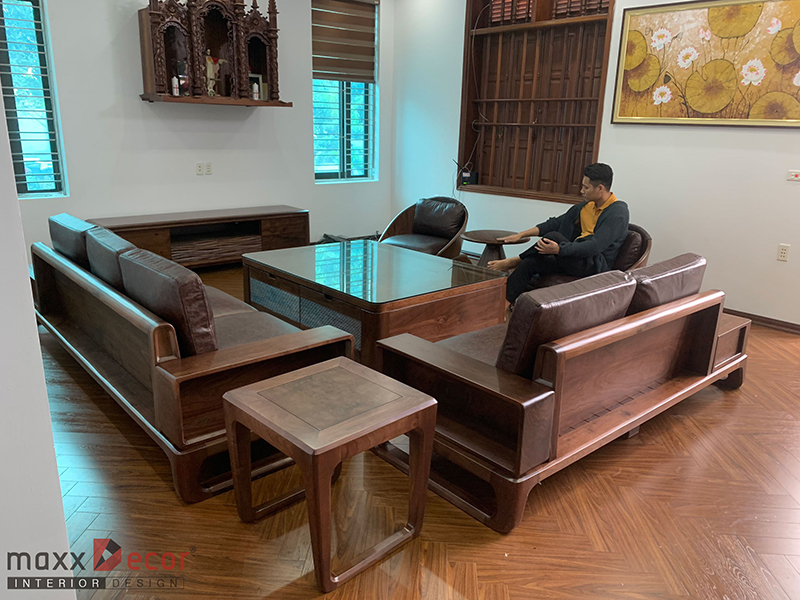 Sofa gỗ óc chó là một “siêu phẩm” hot trong bộ sưu tập sofa gỗ tự nhiên với vẻ đẹp độc đáo cùng độ bền vượt thời gian chính vì thế mà những sản phẩm gỗ óc chó không hề rẻ mà nó thuộc phân khúc khách hàng cao cấp có điều kiện về kinh tế để sử dụng các sản phẩm về dòng gỗ nhập khẩu cao cấp này. Dưới đây là không gian phòng khách gia đình anh Cần tại Thuỷ Nguyên - Hải Phòng sau khi nội thất maxxDecor bàn giao hoàn thiện mới quý độc giả cùng tham khảo