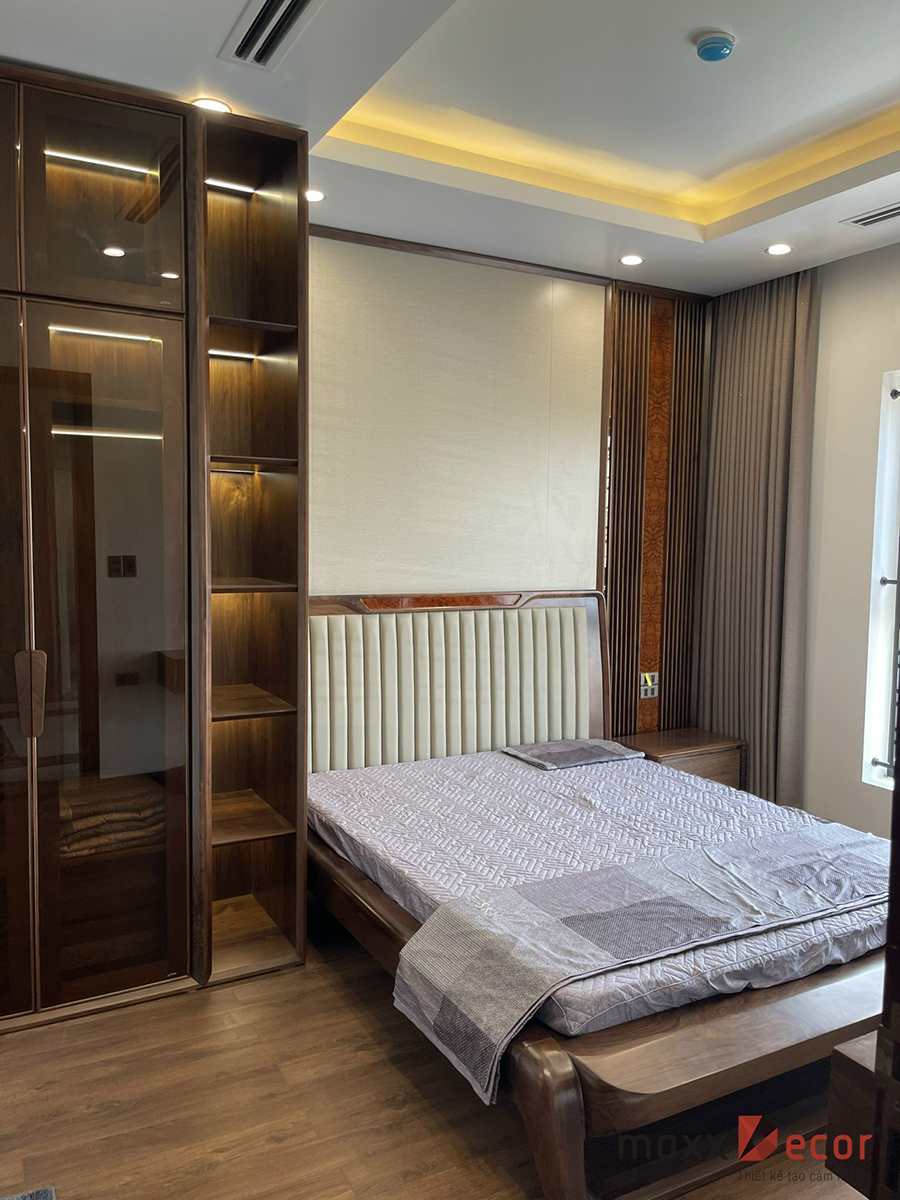 Thiết kế và thi công nội thất phòng ngủ master với gỗ óc chó đang là xu hướng được nhiều gia chủ lựa chọn cho các dự án biệt thự cao cấp. Với màu sắc ấm áp, vẻ đẹp tự nhiên của gỗ cùng với độ bền vượt trội, gỗ óc chó luôn mang đến một không gian sang trọng, đẳng cấp nhưng không kém phần gần gũi và ấm cúng. Hãy cùng maxxDecor khám phá chi tiết về quá trình thi công hoàn thiện phòng ngủ master cho biệt thự gỗ óc chó dưới đây.