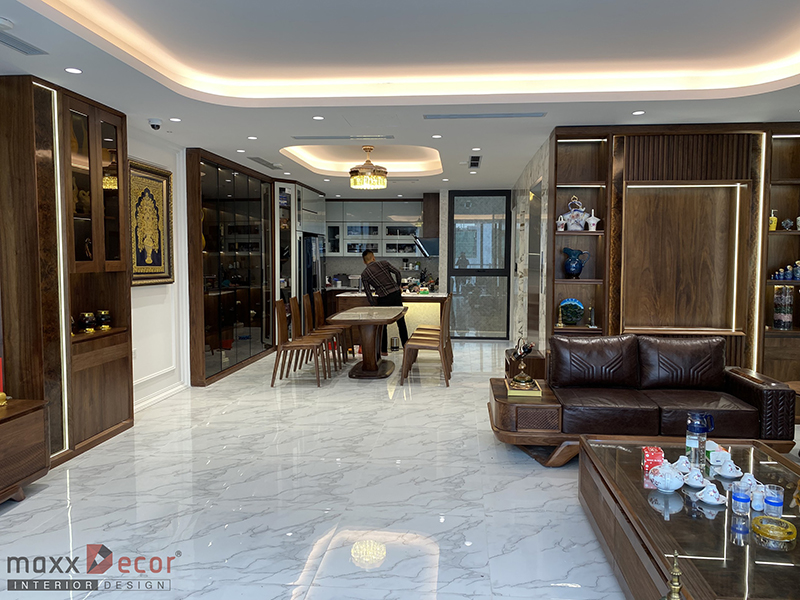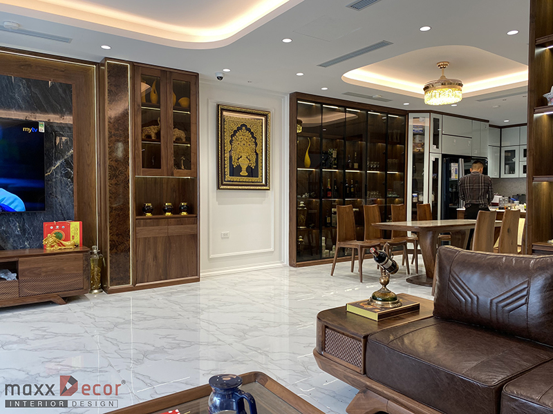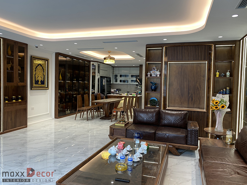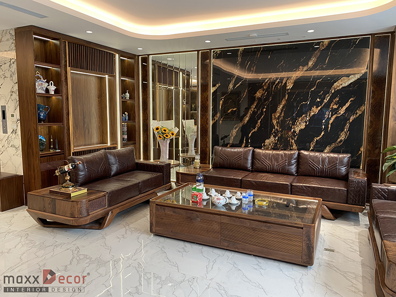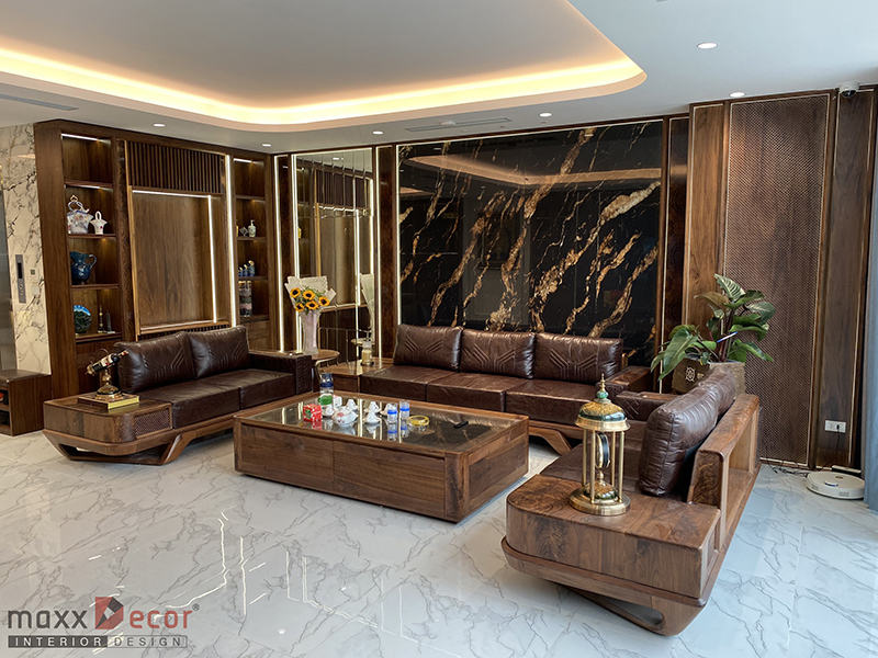 Một không gian nội thất phòng khách gỗ óc chó trong biệt thự sẽ tạo ra không gian sang trọng và đẹp mắt. Nội thất maxxDecor tiếp tục làm đẹp những không gian ngôi nhà biệt thự với gỗ óc chó đẹp nổi bật và tinh tế cho chủ đầu tư tại Hà Đông, không gian đã hoàn thiện và đi vào hoạt động cùng tham khảo không gian phòng khách ngay dưới đây nhé.