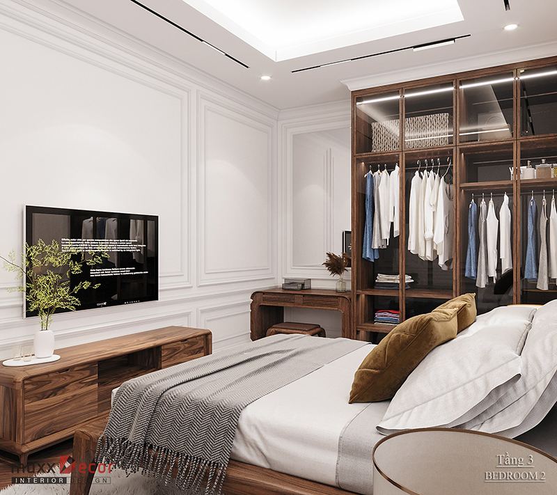 Thiết kế nội thất gỗ óc chó sang trọng biệt thự Vinhomes Reverside