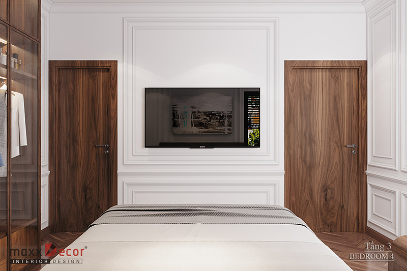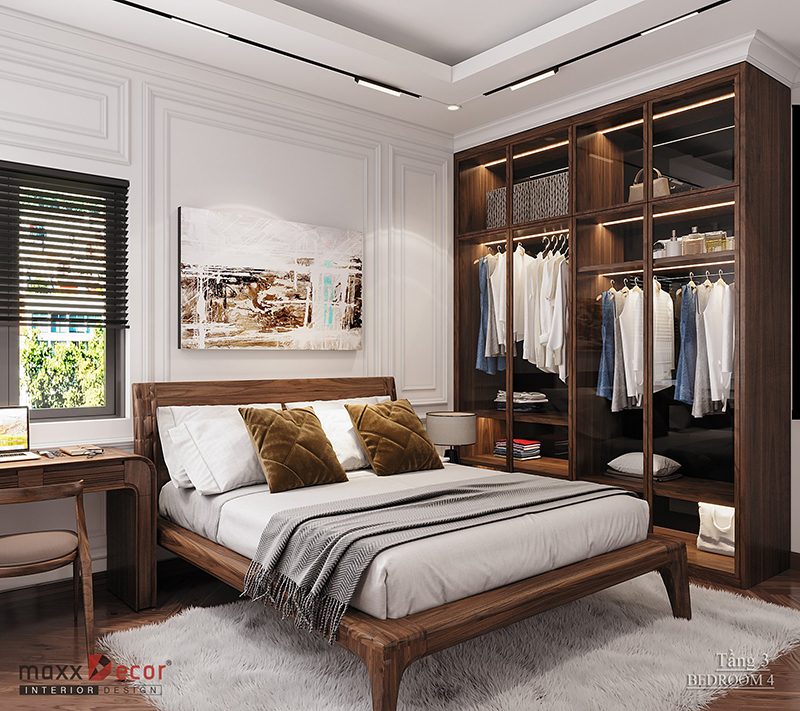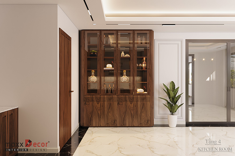 Thiết kế nội thất gỗ óc chó biệt thự 4 tầng hiện đại