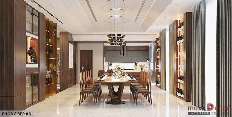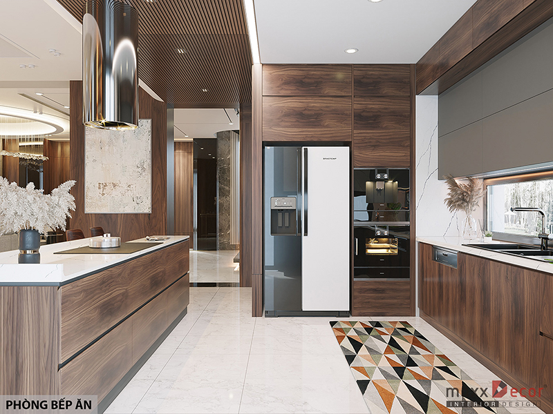 Với nội thất bếp ăn gỗ óc chó sang trọng, bạn sẽ có một không gian bếp đẳng cấp, tinh tế và ấm cúng, tạo nên một không gian ẩm thực đáng mơ ước.