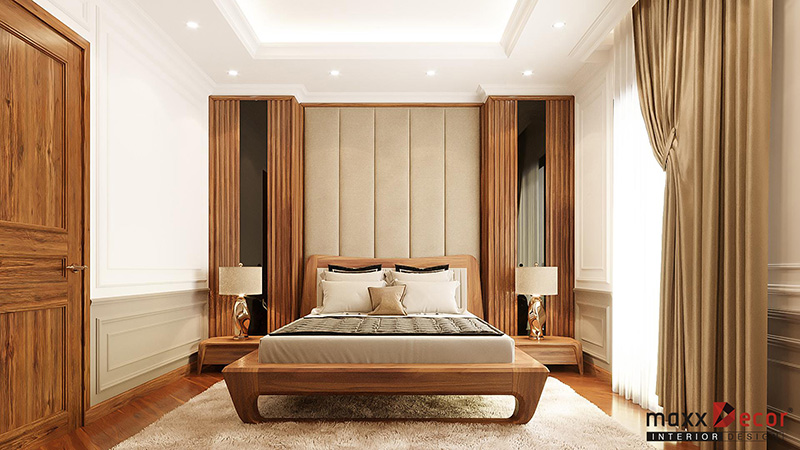 Mẫu thiết kế nội thất phòng ngủ bằng gỗ óc chó sang trọng