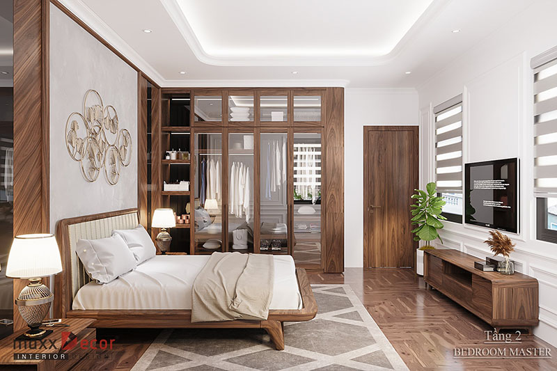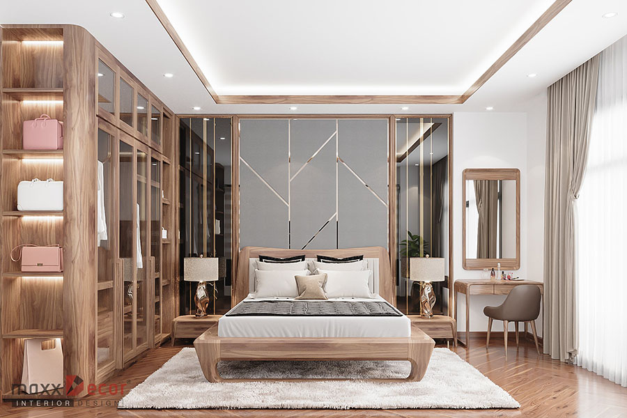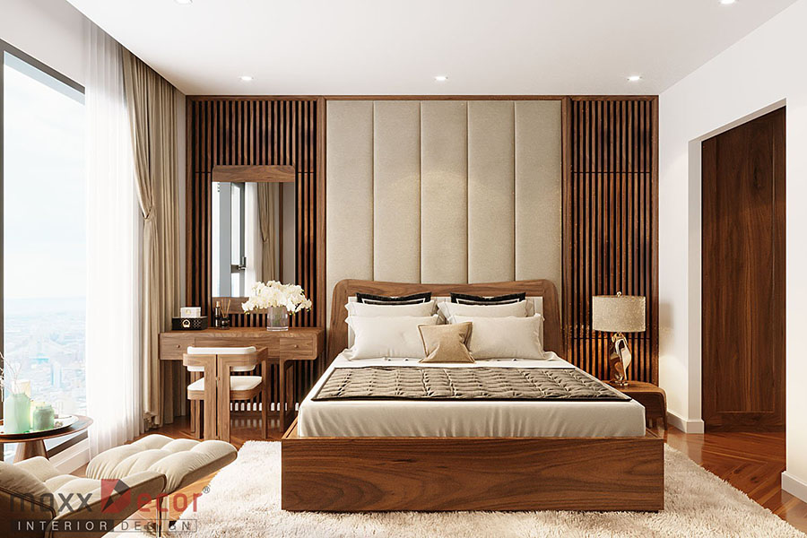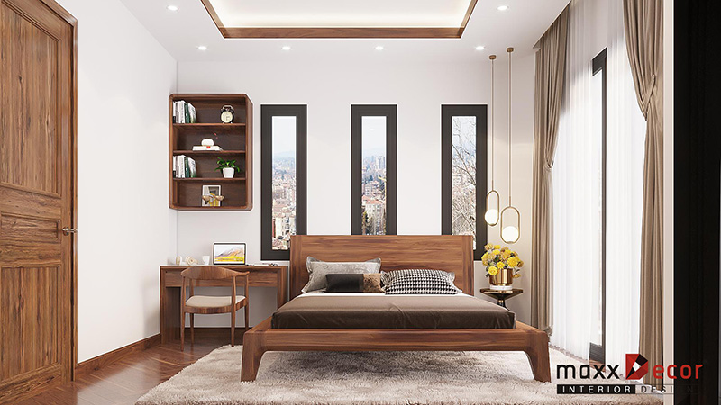 Bố cục nội thất phòng ngủ gỗ óc chó